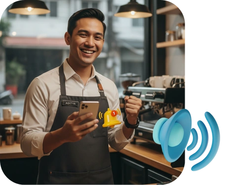 Setiap pembayaran yang masuk langsung diumumkan lewat suara otomatis di aplikasi. Fungsinya sama seperti QRIS Soundbox, tapi gratis tanpa perlu beli perangkat tambahan.
